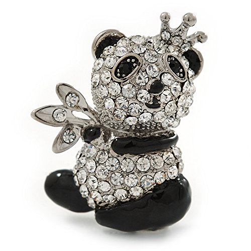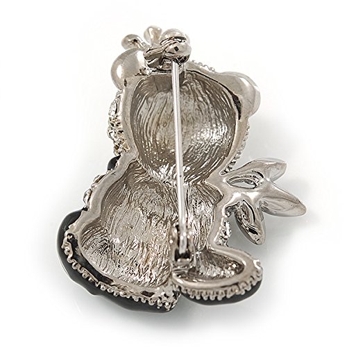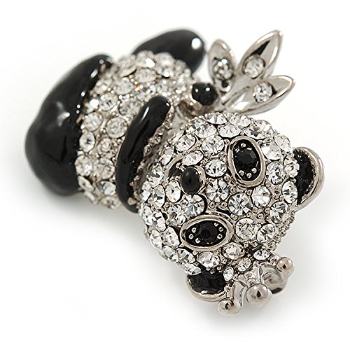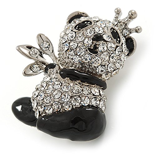 Add a cute and cuddly character to your look with this Crystal, Black Enamel Quinn Panda Bear Brooch In Rhodium Plated Metal. Featuring an adorable panda bear design, crafted in rhodium plated metal and pave set with clear crystals. The ears, paws and legs decorated with black enamel detailing. The bear measures about 35mm L x 25mm W, and secures with a flag pin/revolver clasp. Fantastic gift idea for the ladies - mothers day, Christmas, birthday, anniversary, wedding, bridesmaid or why not just treat yourself!tFeature