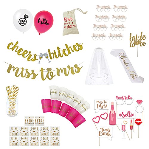 Studio : Help A Maid Out Publisher : Help A Maid Out Binding : Kitchen Product Description Our luxury BACHELORETTE PARTY PACK has been designed to help all MAID OF HONOURS and BRIDESMAIDS throw your bride-to-be the ULTIMATE, CHIC send off with our ALL-INCLUSIVE bachelorette pack. The pack contains 80 items themed in GOLD, PINK, WHITE and ROSE GOLD to throw your bride the BACHELORETTE PARTY OF DREAMS! No tacky cheap frills, only the HIGHEST-QUALITY, PREMIUM items for your bridal party! With our pack you can RELAX and have PEACE OF MIND knowing that you have all the items you need for your bridal shower to IMPRESS both your bride and guests with our items that all have the WOW FACTOR. We have gone that one step further to make sure laying out our items are as easy as possible for you by having our BANNERS already PRE-STRUNG. This STRESS-FREE party pack will be conveniently delivered to your doorstep in a sturdy, elegantly branded-white box complete with pink tissue paper. Your BRIDE-TO-BE only deserves the best and therefore we have included the most ELEGANT and CHIC items for your bride to wear. Our BRIDAL VEIL with COMB and SATIN SASH have been beautifully made to ensure they look STUNNING on your bride but all are COMFORTABLE. Our ONE OF A KIND bachelorette pack has truly UNIQUE items such as our 'Bride's Oh Shit Kit' to ensure your bride is fully looked after the morning after the party! It will also provide her with an additional keepsake to have from her send off. So give your BRIDE the BRIDAL SHOWER OF DREAMS with our beautiful bachelorette decorations and have fun creating LONG-LASTING MEMORIES having the time OF YOUR LIVES. 0