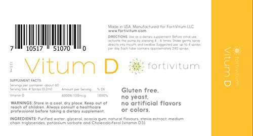 -. Title : FortiVitum | Vitamin D3 4,000IU Supplement | All Natural. High Absorption and Potency Oral Spray. Strengthen Bones, Boost Immune System and Energy Levels. Polysorbate 80 & GMO-Free. Made in USA.