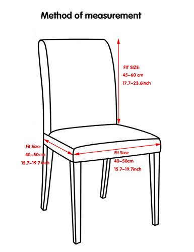 -. Feature : 92-percent polyester 8-percent spandex Stretch chair Slipcover,chair slipcover Suitable for Chair Size: Back Height: 17.7-23.6inch (45-60cm) Seat Length:15.7-19.7inch (40-50cm) Seat Width:15.7-19.7inch (40-50cm) can be used to MOST Parsons Chair / Thick fashion Simple soft moderate Breathable anti-wrinkle Four Seasons General , Bring a new face to your chair / Can be used for Hotel wedding banquet dinner meeting celebration ceremony family dining room decoration etc / Stretchable Material, stretch that recovers quickly, secure fit with sewn-in elastic hem Unique stretch fabric conforms to your furniture's contours for a custom-look fit / Machine Wash Cold, Tumble Dry Low, Not Ironing, Wash Dark Color Separetely ,Delicate/Gentle Cycle, Line Dry away from Heat, Do not Bleach, pls use neutral detergent, soaked no more than 30 minutes