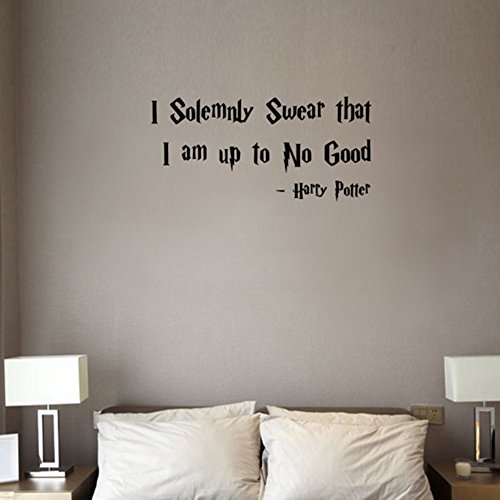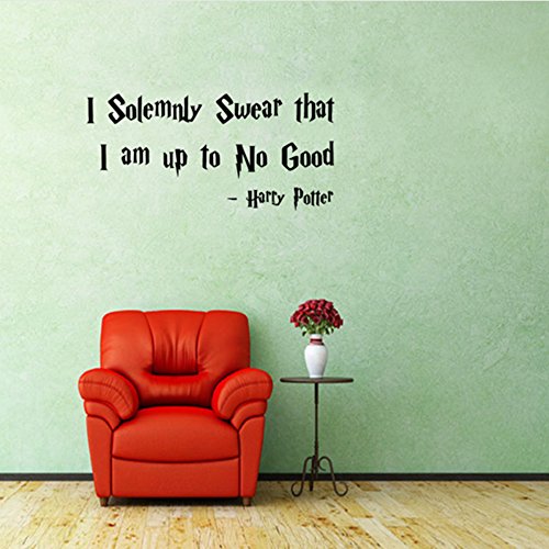 -. Binding : Kitchen -. Brand : HJ -. Color : Black -. EAN : 0714131999200 -. Feature : Wall Decal Color: Black / Size: 22"Wide x 10" High / Can be used on wall or any other smooth surface / Self Adhesive wall decal and easy to setup - Made from 7 year High Quality Vinyl / WARNING: If Your Place (wall) Is Not Smooth Enough Please Consider Carefully Before Purchasing, The Sticker Can Only Apply To Smooth Surface -. IsAutographed : 0 -. Label : JH -. Manufacturer : JH -. PackageQuantity : 1 -. ProductGroup : Home -. ProductTypeName : HOME -. Publisher : JH -. Studio : JH -. Title : Vinyl Wall Decal Sticker : I Solemnly Swear That I Am Up To No Good Harry Potter Quote Bedroom Bathroom Living Room Picture Art Peel & Stick Mural Size: 10 Inches X 22 Inches -. UPC : 714131999200