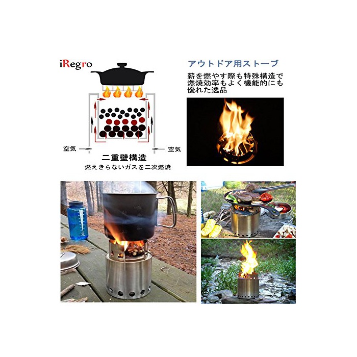 원본상품명: IREGRO ウッドスト?ブ 二次燃? 燃料不要 五?コンロ 焚火台 薪 コンパクト 携?用小型 アウトドア キャンプ ウッドバ?ニングスト?ブ