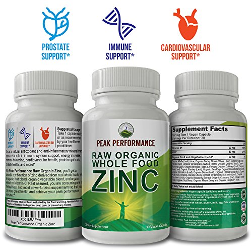 Don't Be Fooled By Cheap Imitations! While most brands offer synthetic Zinc, Peak Performance is RAW ORGANIC WHOLE FOOD ZINC WITH WHOLE FOOD VITAMIN C for extra immunity support. Also acts as a powerful antioxidant and plays a vital role in prostate health, energy increase, hormone balancing, cardiovascular health, protein synthesis and more.