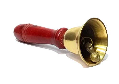 Hashcart Hand Held Bell (4.5 inch) Brass & Wooden Puja Pooja Prayer Ghanti - Indian Hindu Festivals & Christmas