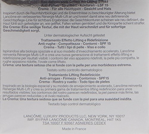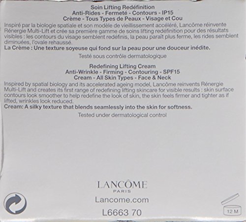 A lifting and redefining facial cream. Enriched with Multi-Tension technology for firming action. Provides superior moisture to re-plump skin. Reduces the appearance of wrinkles and fine lines while redefining facial contours. Shields skin against harmful UV rays with SPF 15. Leaves skin softer. smoother. denser. brighter. even-toned and more comfortable Perfect for all skin types. Tested under dermatological control.Feature