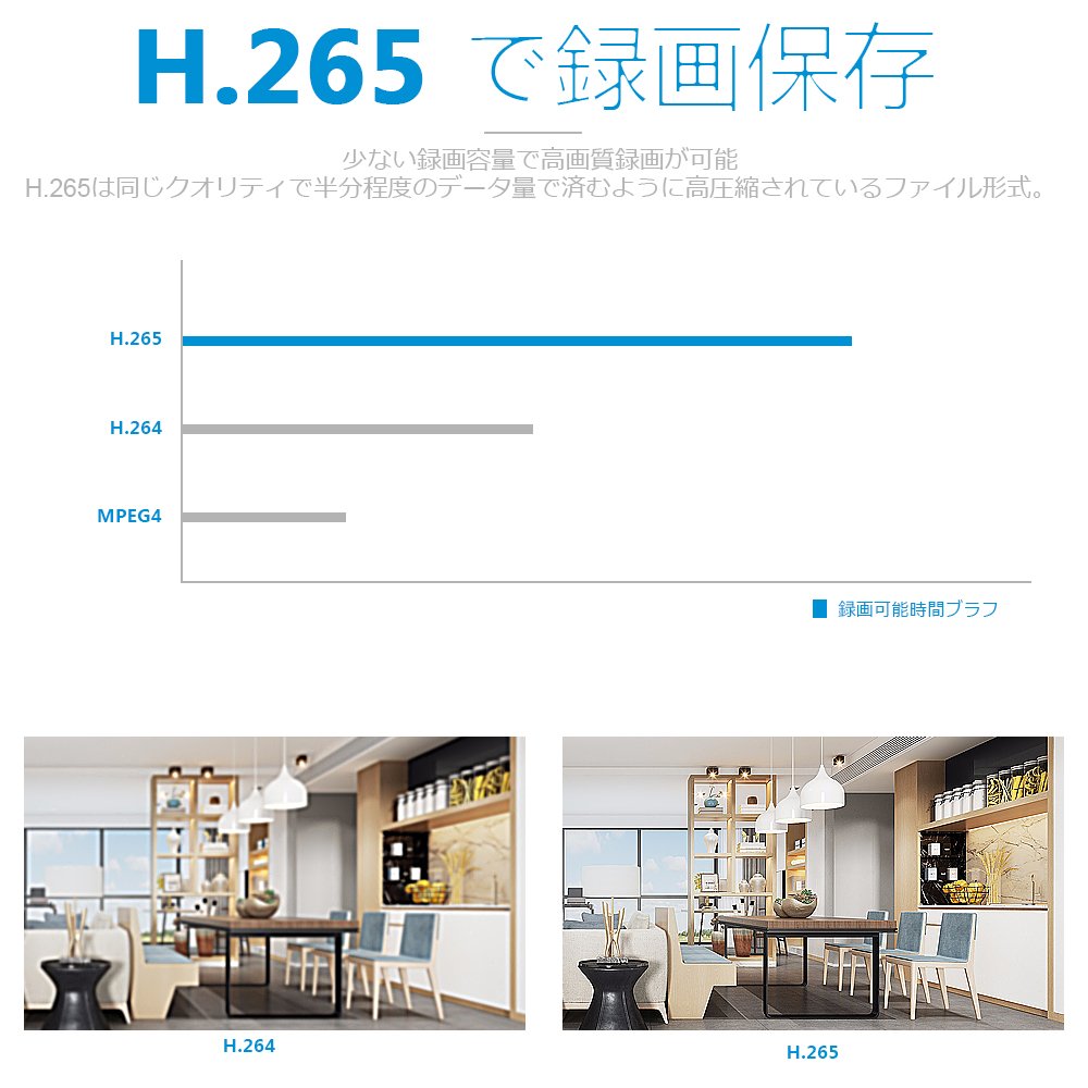 Compression method H.265 compatible, it can record more efficiently than conventional NVR.