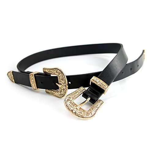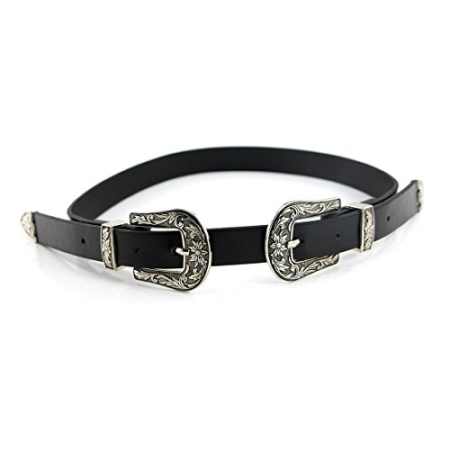 -. Feature : Made from faux leather/ soft finex leather with alloy buckles / Belt Length: Single buckle(42.5*0.9 inch) suitable for waist of (25.2-38.2 inch); Double buckles(37.4*0.9 inch) suitable for waist of(26.4-33.5 inch) / Vintage Double Buckles Belt is the hottest trends recently, it can arrange in groups with dress, high-waisted jeans, crop tops, etc, polish your entire look, make you attractive and elegant / Stunning double buckle belts feature the edges have buckle look for extra detail, other flat stud embellishments and antiqued metal double buckles, keepers, and end tips with filigreed details / A perfect gift for friends, students, teachers, mum, girlfriend. Suitable for Mother's Day, Birthday, Party, Dating, ella, Concert,etc