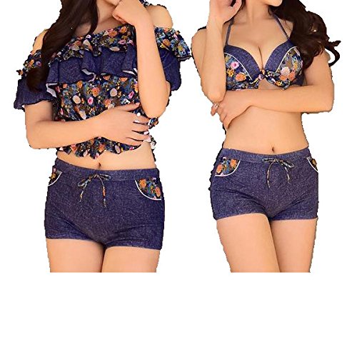 -. Title : レディース 水着 タンキニ 3点セット ワイヤービキニ かわいく 体型カバー セパレート 花柄