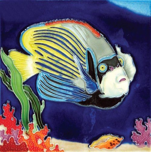 Continental Art Center BD-0078 8 by 8-Inch Tropical Fish with Blue and Yellow Strips Ceramic Art Tile