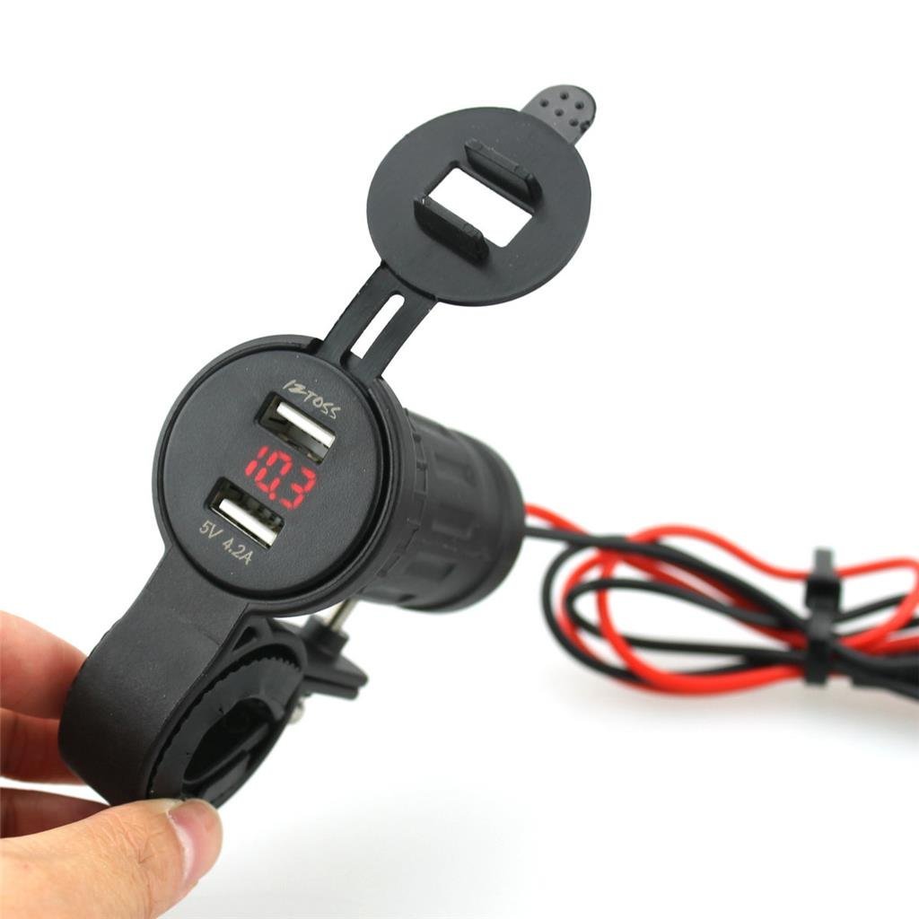 Iztoss Waterproof Bike 4.2A USB Power Supply 2 Port Handle Clamp Easy Charging