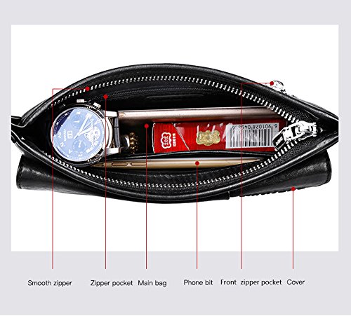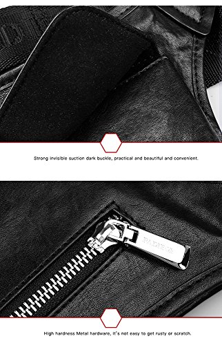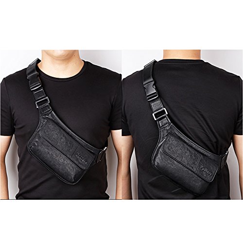 -. Feature : The material of mens chest bag : this very well-made genuine top grain leather and you can smell the leather and looking the little sample in the bag. It is luxurious looking and feeling . / Dimensions:20(L)*15(H)*4(W)cm.The size is measured according to object,Please compare carefully with the model photo and size before buying. / Extra large capacity:main bag,inside zipper pocket,outside zipper pocket,mobile phone part. Larger zippered compartment can hold some travel sundries such as small notebook, map, mobile phone and other accessories into the zipper compartment. designed specifically for those who want to leave home and put all your small accessories in one place. / Excellent stitching line and shiny surface of the leather :The stitching is well and perfect matches the color of bag .Make sure that it have a clean and good looking . / Feature:can be a chest bag also a waist bag