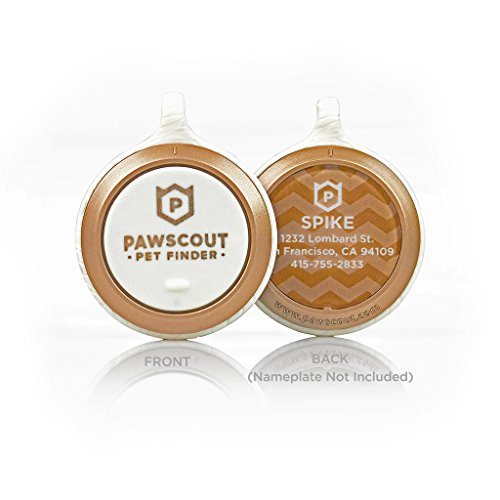 White & Gold Pawscout Digital Tag for Dogs and Cats - Pawscout Pet Finder is a next-generation digital pet tag. The Pawscout Pet Finder attaches to any pet collar and locates your pet within a 200-foot radius of any phone or tablet with the Pawscout App. You can put your pet on a virtual leash and receive alerts if he strays. Invite friends, family, neighbors, dog walkers and pet sitters to install the free app to help protect your pet. If the worst ever happens and your pet goes missing, send out a digital "lost dog" flyer to all the animal lovers in your area and have the community searching for your pet the moment you notice he's on the loose. Why do you need Pawscout? Microchip information goes out of date, and reading a microchip requires a trip to the vet. Pets are family members, and it is impossible to capture their appearance, personality and special needs in the two or three lines provided by traditional pet tags. Pawscout offers a complete pet profile and a lifetime of protection for a one-time purchase. The Pawscout battery lasts six months or more and is easy to replace. Pawscout Pet Finder is waterproof, lightweight, compact and designed for dogs and cats. And it was developed in partnership with the SFSPCA to introduce a community-supported way to find lost pets and reunite them with their families. Never lose your best friend.Feature