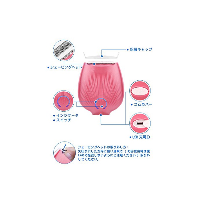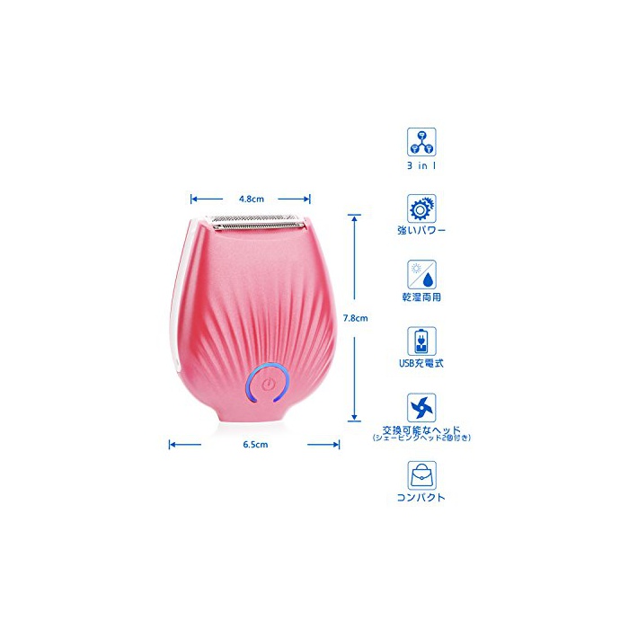 원본상품명: ENERG 電動レディスシェバ 女性用トリマ USB充電 コドレス IP4X防水 脚 ワキ ビキニライン シェビングヘッド2個付き T18-EN203