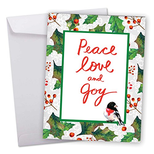 J6735HXSG Jumbo Christmas Card: Christmas Words & Birds Featuring Beautiful Birds Paired with Holiday Sentiments,With Envelope (Extra Large Version: 8.5'' x 11'')