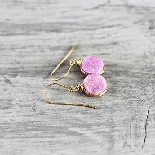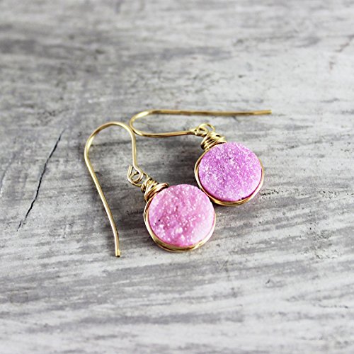 -. Title : Pink Drusy Quartz Gemstone Earrings