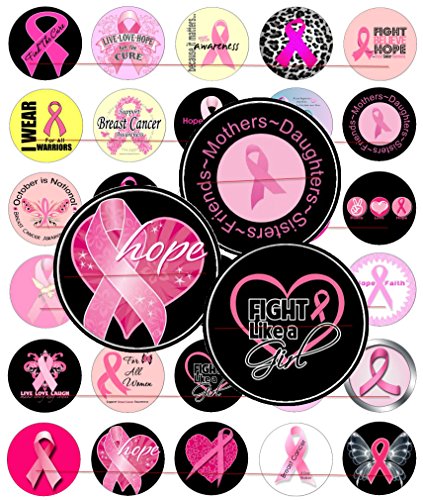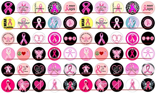60 Precut 1" BREAST CANCER AWARENESS Bottle Cap Images A