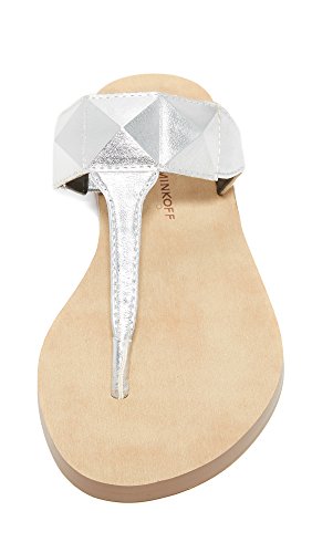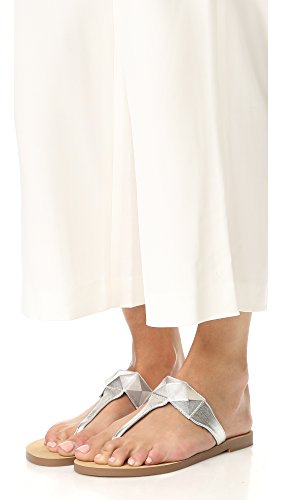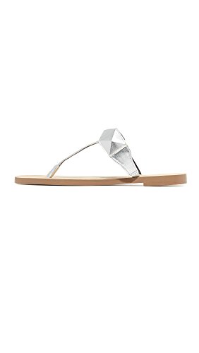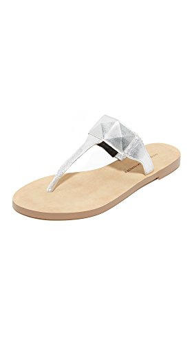 Product DescriptionRaised, geometric designs add modern style to these faux-leather Rebecca Minkoff thong sandals. Low heel and synthetic sole.0