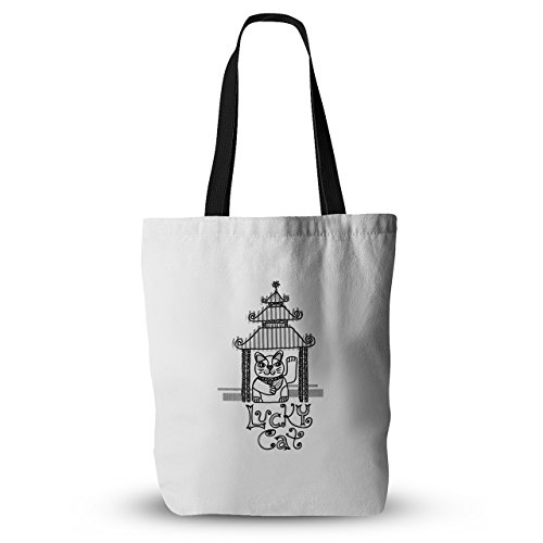 KESS InHouse Jane Smith "Lucky Cat" Black White Everything Tote Bag, 18" x 18", Multicolor