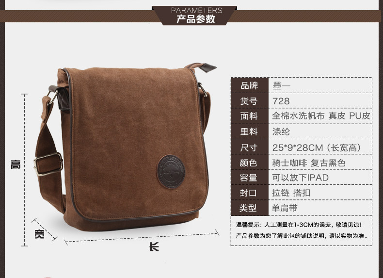 墨一复古休闲小包 帆布包男包 户外简约单肩包斜跨背包斜挎包