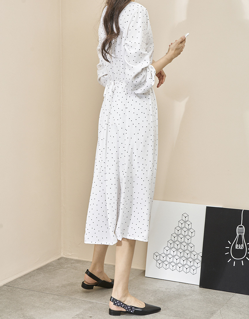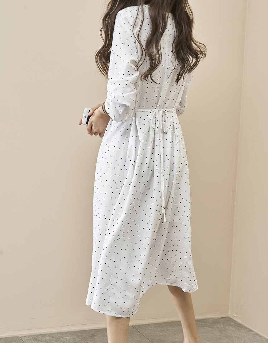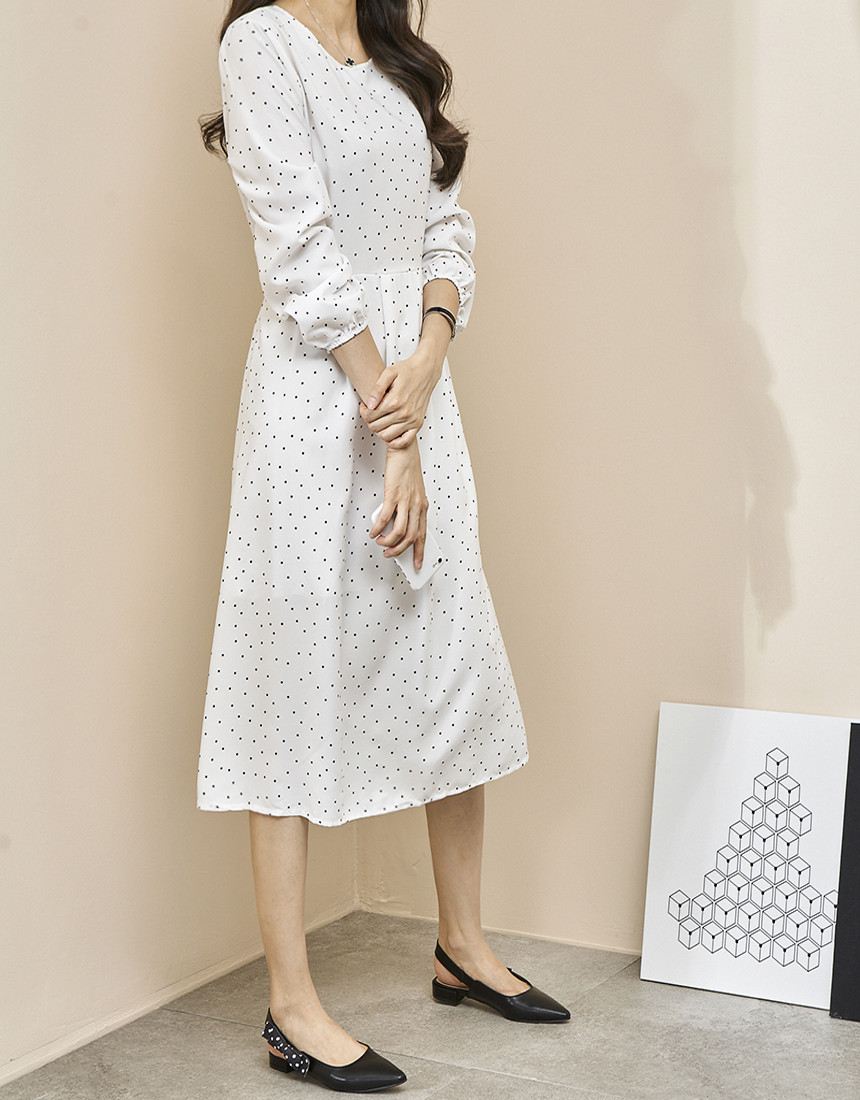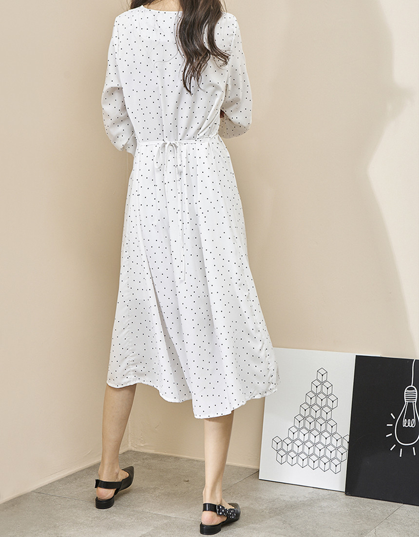 #도트 라운드 스트랩 긴팔 롱원피스