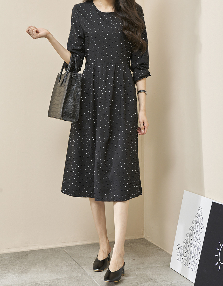 귀여운 라운드 도트 롱원피스에요