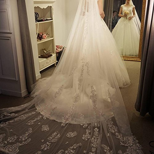 Fenghuavip 1T 3M Bridal Veils for Wedding with Sequins