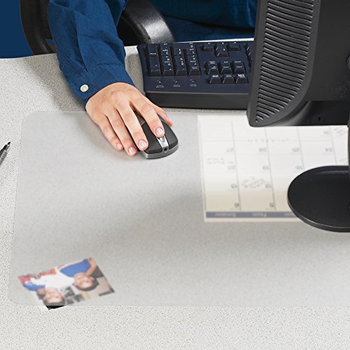 Non-glare eye strain reducing see through desk pad keeps necessary information in view such as notes, lists, and schedules without diminishing your desktop space