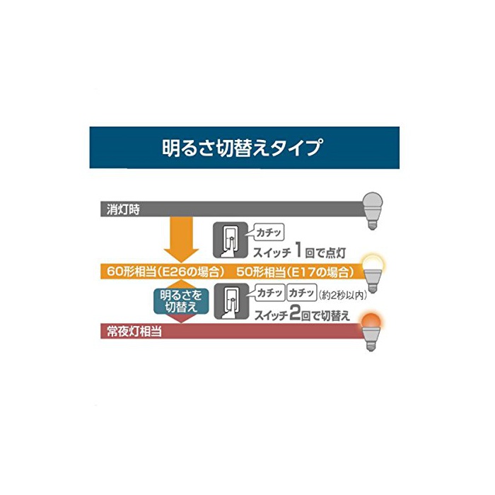 원본상품명: パナソニック LED電球 口金直17mm 電球50W形相 電球色相(6.4W) 小型電球明るさ切替えタイプ 廊下向け 密閉形器具 LDA6LGE17KURKSW