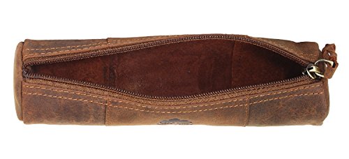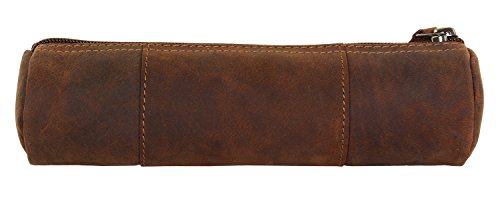 Vintage Leather Zippered Pen Pencil Pouch Gift for Men Women ~ Carry Charcoal Marker Color Brush Bag for Artist Students ~ Craft Tool Kit ~ For College School Office Business Work by Rustic Town