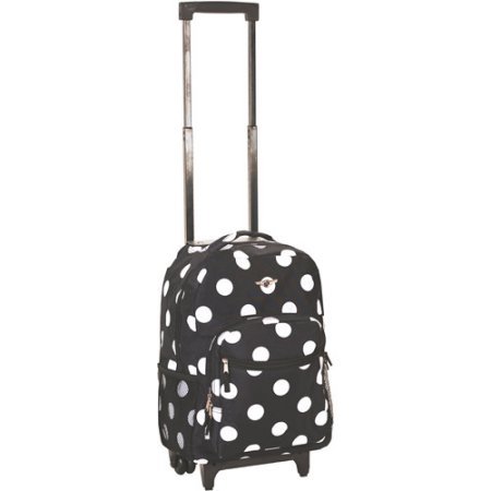 -. Binding : Electronics -. Brand : Rockland -. Color : Black -. EAN : 0783761476337 -. Feature : Includes 17" rolling backpack Material content: polyester Rolling backpack with double skate wheels / 2 zippered pockets on the front, one with a built-in organizer Zippered main compartment / 2 mesh side pockets Fabric handle at the top / Metal telescoping pull handle Heavy duty plastic stand on bottom to keep the bag standing / Dimensions: 17"L x 13"W x 10"H -. Label : Rockland R01-PEACE -. Manufacturer : Rockland R01-PEACE -. ProductGroup : PC Accessory -. ProductTypeName : CARRYING_CASE_OR_BAG -. Publisher : Rockland R01-PEACE -. Studio : Rockland R01-PEACE -. Title : Rockland Lage 17" Rolling Backpack,Black Dot -. UPC : 783761476337