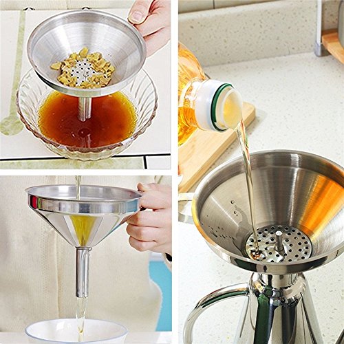 -. Title : Stainless Steel Pouring Decanting Funnel with Removable Strainer, 4-Inch Funnel Kitchen Tools