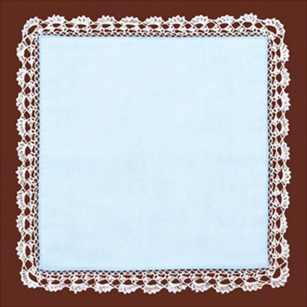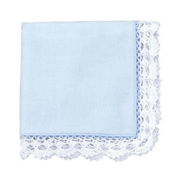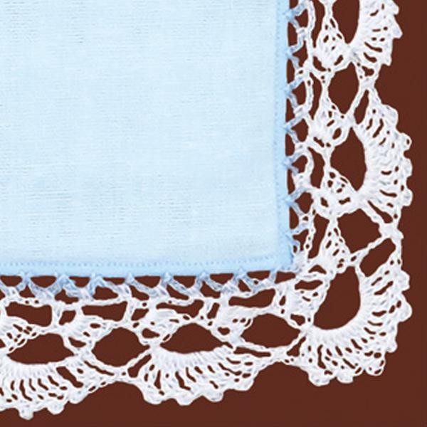 | 初級~中級者向け。ブルーのハンカチが白レースのエジングで清楚でオシャレな雰囲気に。 |