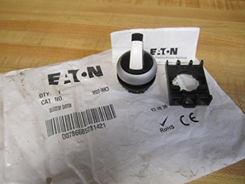 -. Title : Eaton M22-WK3 Selector Switch, 3 Positions, Lever Actuator Style, Off-On Action, Silver Bezel Color, 45 Degree Turning Radius