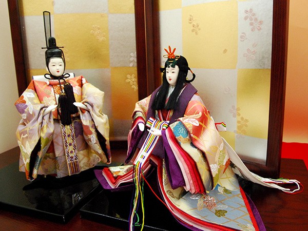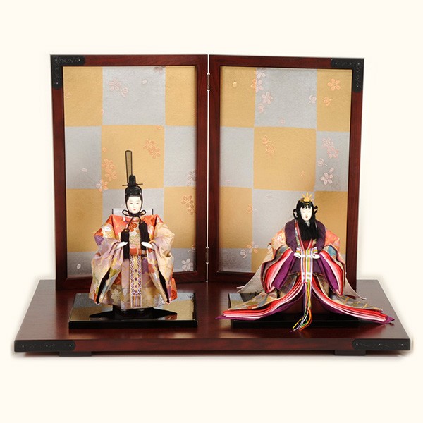 ・台座・屏風等には落ち着いた色目の雛人形セット。