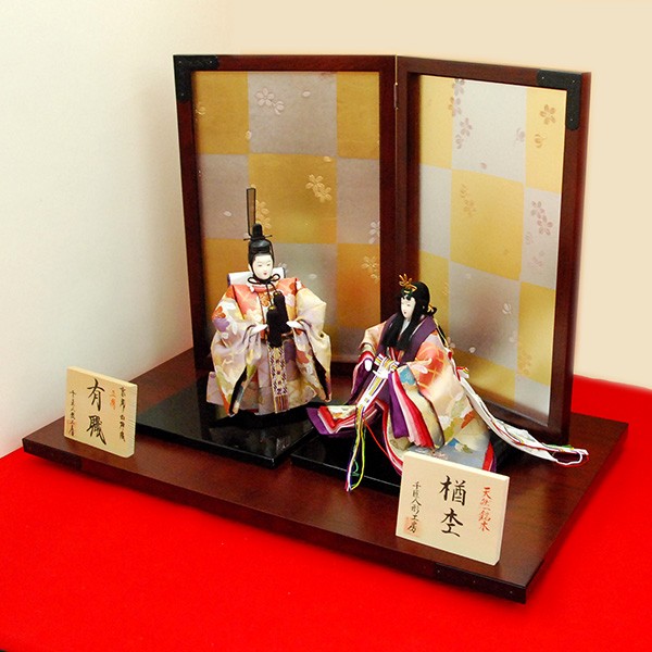 ・和洋室に合う高級自然木使用の台座の雛人形飾り