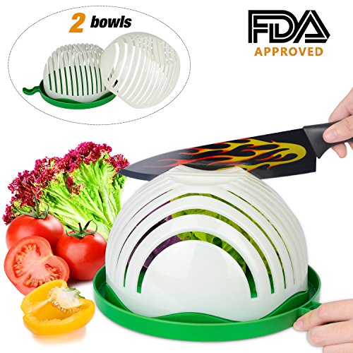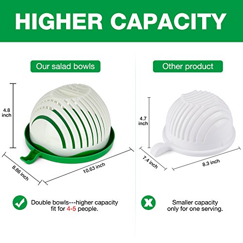 『DOUBLE BOWL & HIGHER CAPACITY』--Our salad cutting bowl , which includes two salad bowls and has higher capacity for 4-5 people’s food, is larger than standard salad bowl. Go into action! Enjoy your hand-made salad with your family or friends!