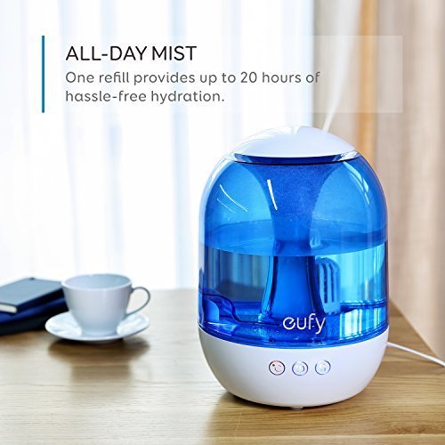 Eufy Humos Air 1.0, Ultrasonic Cool Mist Humidifier with Ultra-Quiet Operation, Anti-Bacterial Water Warmer, 1.0 Gallon / 4 Liter, Up to 20 Hours Use, Auto Shut-Off, Single-Room / Studio / Office Use
