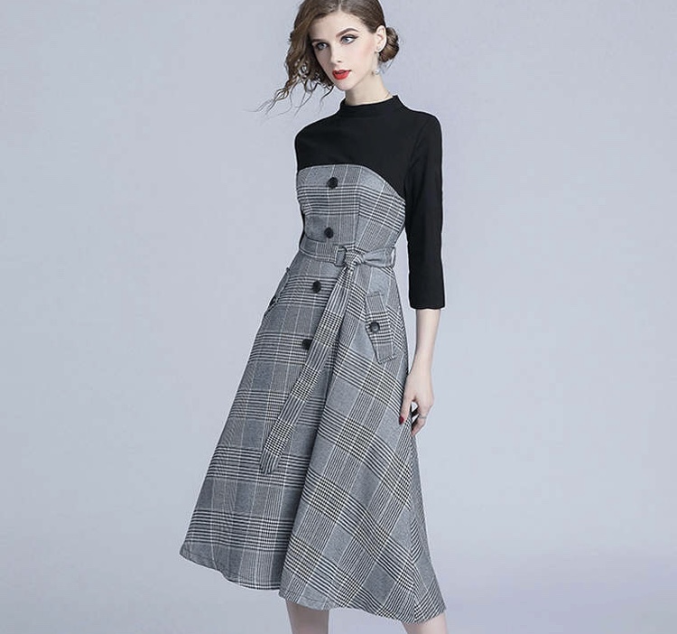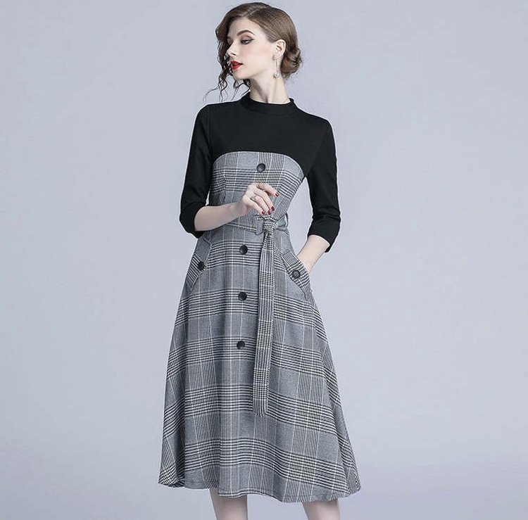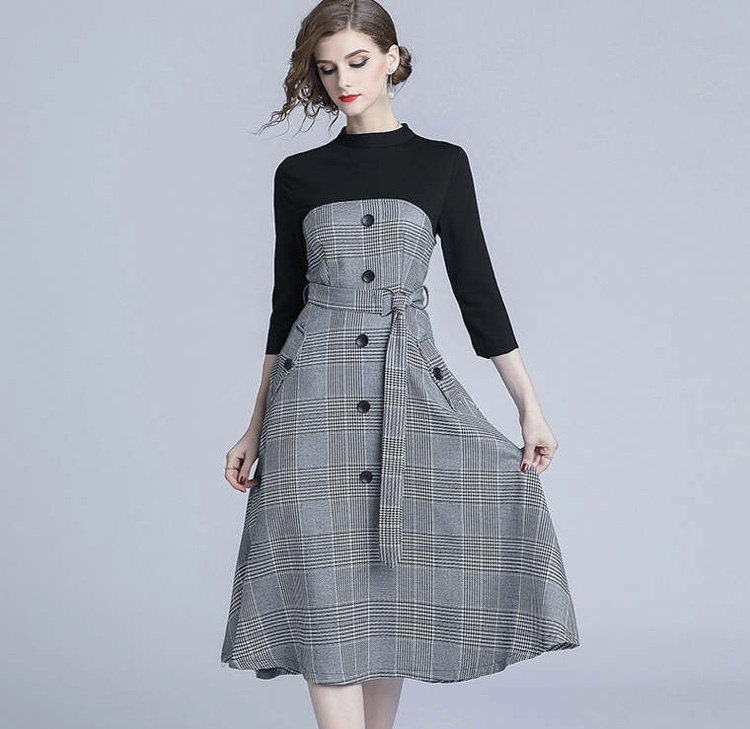 ニットとコンビになっているチェックフレアスカートのワンピースです♡