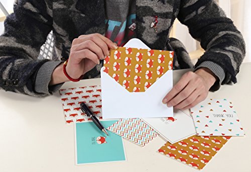 Thank You Cards - Greeting Cards - 6 Unique Cute Fox Designs - Bulk Box Set - Blank Inside - Includes 48 Cards and Envelopes - 4 x 6 inches