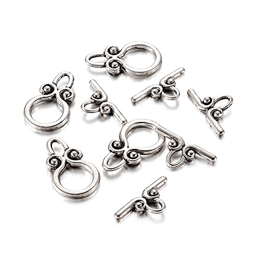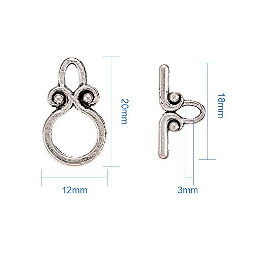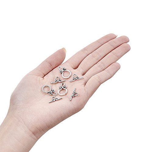 Beadthoven 20sets Classical Tibetan Silver Toggle Clasps Round Jewelry DIY Makings Tbar Clasps