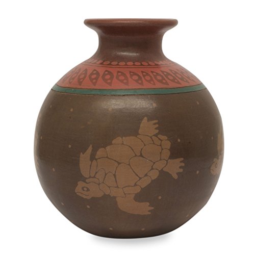 NOVICA Animal Themed Ceramic Vase, Brown, 'Aztec Turtles'