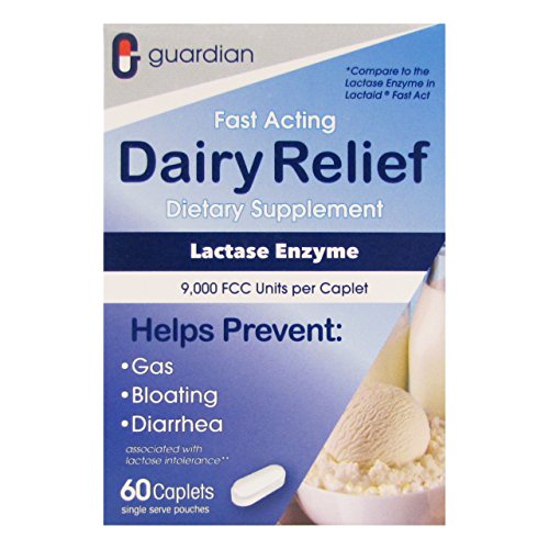 Guardian Fast Act Caplets work naturally to make dairy foods easy to digest, if you have lactose intolerance, so you can enjoy everything on your plate.* They help prevent the gas, bloating, and diarrhea that many people experience after eating foods containing dairy.* With the natural lactase enzyme, this dietary supplement helps prevent symptoms associated with lactose intolerance by breaking down milk sugar (lactose), so dairy foods are easier to digest.* These easy-to-swallow caplets start working with your first bite or sip of dairy food.* *THESE STATEMENTS HAVE NOT BEEN EVALUATED BY THE FOOD AND DRUG ADMINISTRATION. THIS PRODUCT IS NOT INTENDED TO DIAGNOSE, TREAT, CURE, OR PREVENT ANY DISEASE.Feature