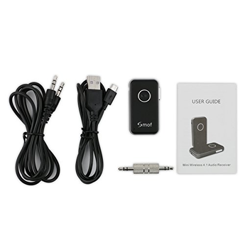 Smof Bluetooth Receiver, New Generation Portable Wireless Audio Adapter/ Car Kit with 3.5mm Stereo Output for Home / Car Audio Music Streaming Sound System (BT4.1-Black)