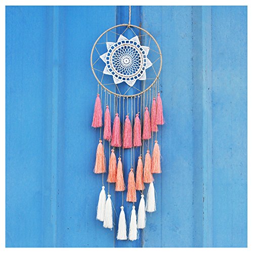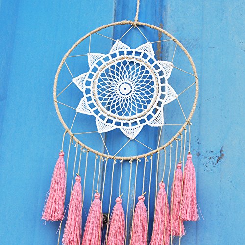 Christmas Gift Artilady 8inch handmade tassel dream catcher wall decoration (pink)