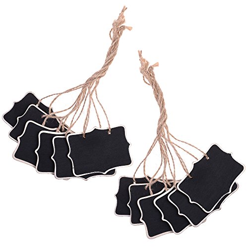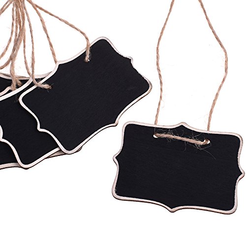 COSMOS Erasable Wooden Chalkboard Sign Message Memo Board with Jute Hanging String, 12 Pieces