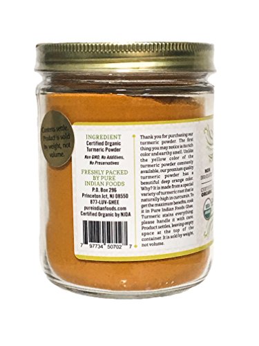 Organic Turmeric Powder Spice 7.5 oz - Freshly Packed in Glass Jar