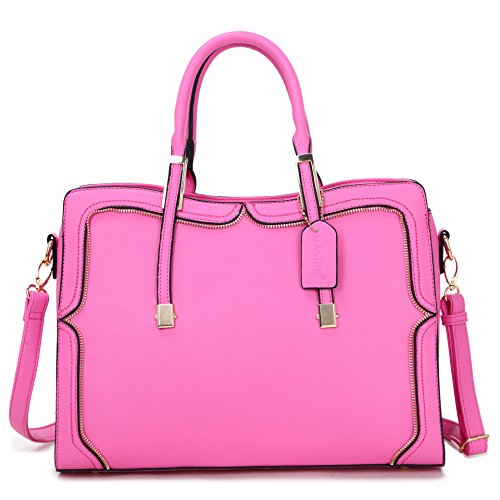 - ★ CHIC FASHION DESIGN: This chic zipper trim accented Dasein structured handbag with medium size is perfect for your daily use. Top full zipper closure with a extra middle zipper compartment will keeps your daily essentials more safe and organized. Removable and adjustable shoulder strap allows you to easily switch this bag between a satchel and a shoulder briefcase.