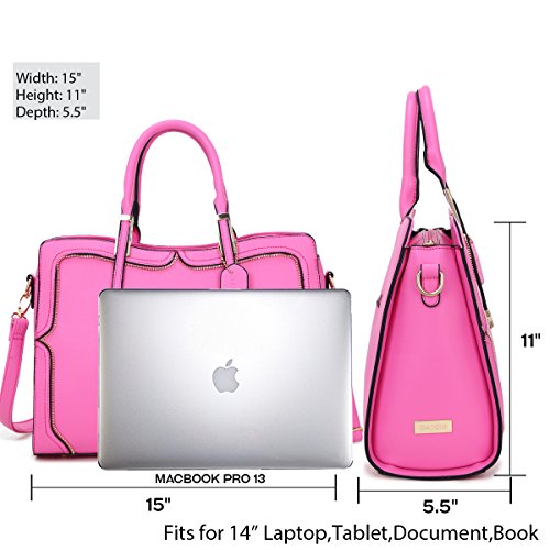 - ★ LARGE DESIGNER BRIEFCASE: 15"W x 11"H x 5.5"D. This fashion handbag can easily fit a 13” laptop, tablet, file, book etc. Shoulder strap length: 48”. Handle drop height. It can used as a school bag, work bag, office briefcase, laptop tote bag, computer bag, travel satchel bag, shopping bag, school bag, teacher bag, file bag etc.