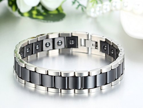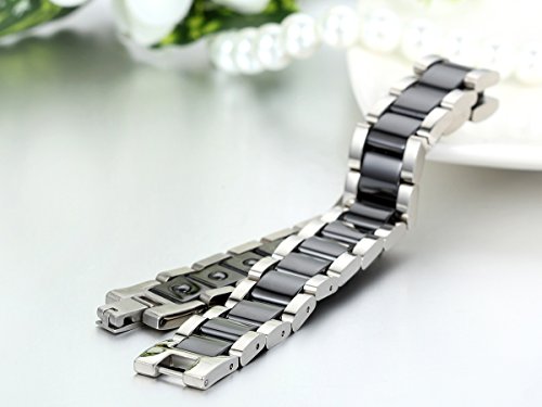 JewelryWe 중요한 사람이나,그이 그녀(애인)에의 선물:쥬얼리 패션 악세사리 맨즈 팔찌,체인 팔찌,마그넷 세라믹 스테인레스,컬러:실버(은);블랙