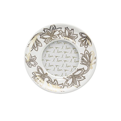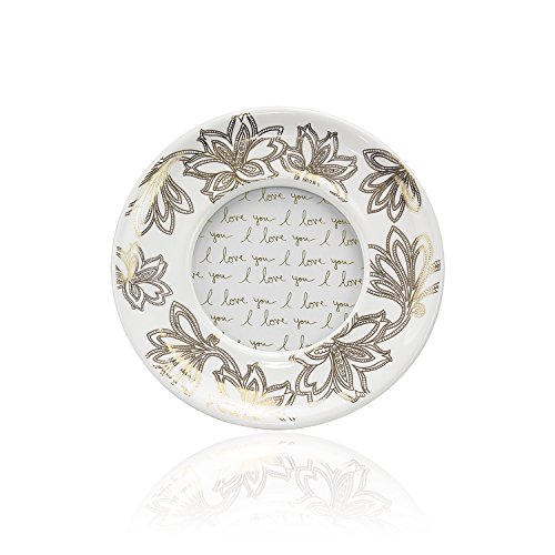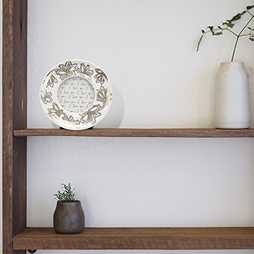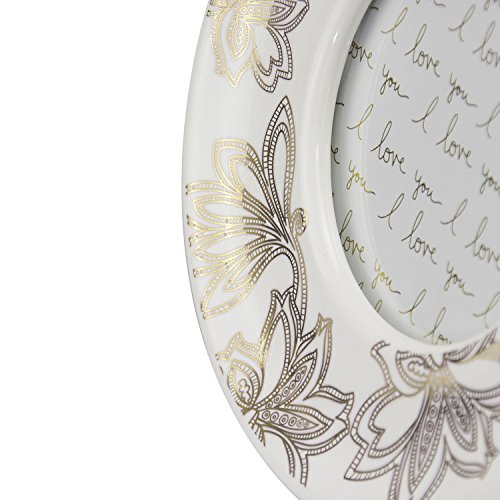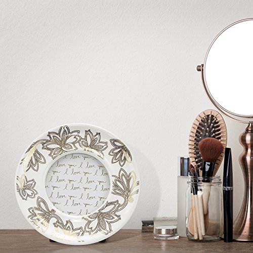 Parisian Home Ceramic Round Picture Frame, Floral, Gold, 4" x 4" in. for Home, Kitchen, Living Room, Girls, Women, Family Photos, Gift, Table Stand, Wall Hanging